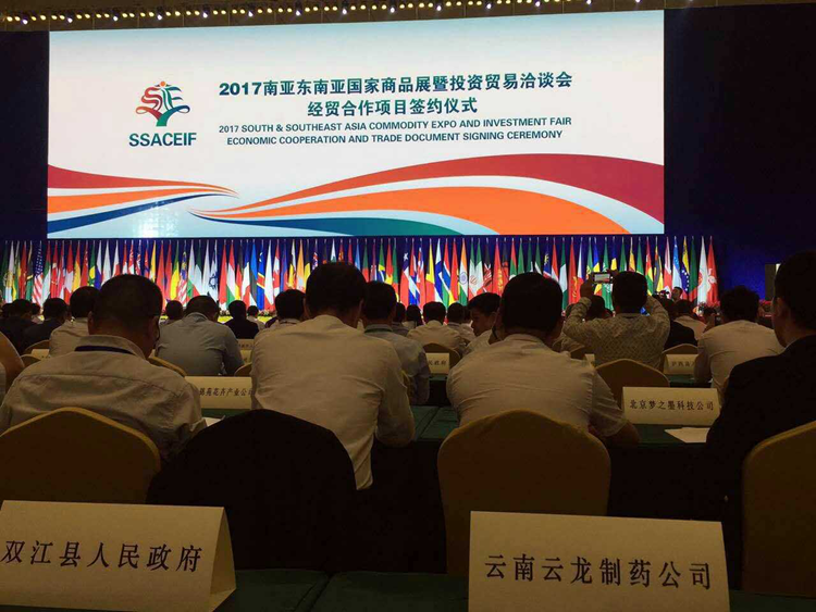 6月13日上午,以“共創(chuàng)新機遇 共謀新發(fā)展”為主題的2017年南亞東南亞國家商品展暨投資貿易洽談會經(jīng)貿合作項目簽約儀式在昆明滇池國際會展中心舉行。集中簽約儀式的擬簽約項目近300個,簽約總金額預計超過4000億元。簽約儀式中,雙江自治縣人民政府與云南云龍制藥股份有限公司簽訂投資合作框架協(xié)議書。