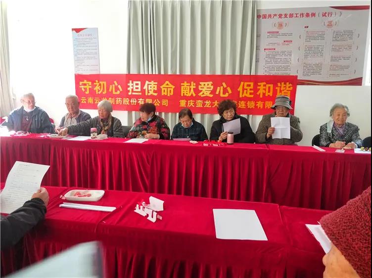 農歷九月初九秋高氣爽,春城昆明的上空一掃多日的陰霾,暖意回歸艷陽高照。九月九重陽節(jié)又稱敬老節(jié),是中國人祭祖、敬老的傳統(tǒng)節(jié)日。10月23日,云南云龍制藥股份有限公司、重慶市蠻龍大藥房連鎖有限公司的愛心小分隊帶著企業(yè)、員工的祝福,帶著抗疫物資來到翠湖路社區(qū)活動室,與40余位老年人共同度過了一個溫馨、有意義的重陽節(jié)。
