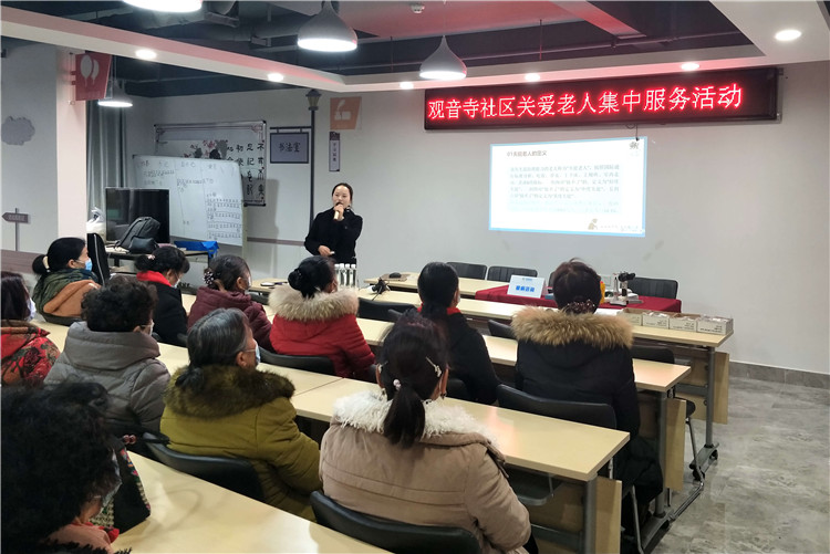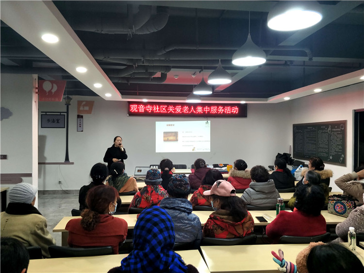 2020年12月31日,昆明市觀音寺社區于社區活動室組織了《觀音寺社區關愛老年人元旦節集中服務活動》。社區借助此次活動在倡導合理健康的生活方式、提高社區老年人生活質量的同時幫助老年人拓展社交圈、結識新朋友。旨在讓老年人樹立正確的健康觀念,擁有一個健康多彩的老年生活,也為社區營造一個尊老、敬老、助老的和諧氛圍。